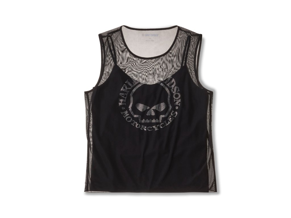 Dámské tílko Willie G Skull Bling Mesh Top - Harley Black