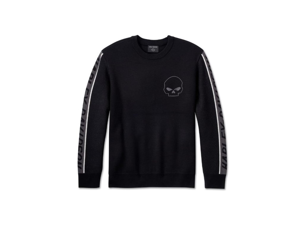 70% akryl, 30% vlna Vyšívaná lebka Willie G na hrudi Nápis H-D na rukávech Kulatý výstřih