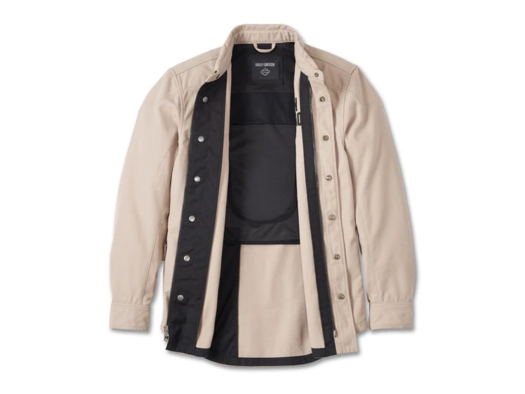 • Stay Cool: Ventilační otvory v podpaží a trupu pro proudění vzduchu. • Fit & Mobilita: Předem zakřivené rukávy. • Materiály: 60 % bavlna, 40 % polyesterový kepr vysoké hmotnosti. 100% polyesterová podšívka. • Zapínání: Přední dvoucestný zip se skrytou patentní légou. Zacvakávací manžety. • Kapsy: Náprsní kapsy s klopou. Pravá boční kapsa se zapínáním na zip. • Další funkce: Zahrnuje EN 1621-1 certifikované chrániče D30® Ghost™ na ramenou a loktech (98104-22VR & 98103-22VR). Zadní kapsa na páteřový chránič odpovídá EN 1621-2 certifikovanému D30® Viper (98105-22VR, prodává se samostatně). Detail reflexního materiálu 3M™ Scotchlite™ na zadním límci. • Designové detaily: Skrytý zacvakávací límec. • Grafika: Přímá výšivka. • Certifikace: Určeno pro splnění EN 17092-4:2020Diskuze