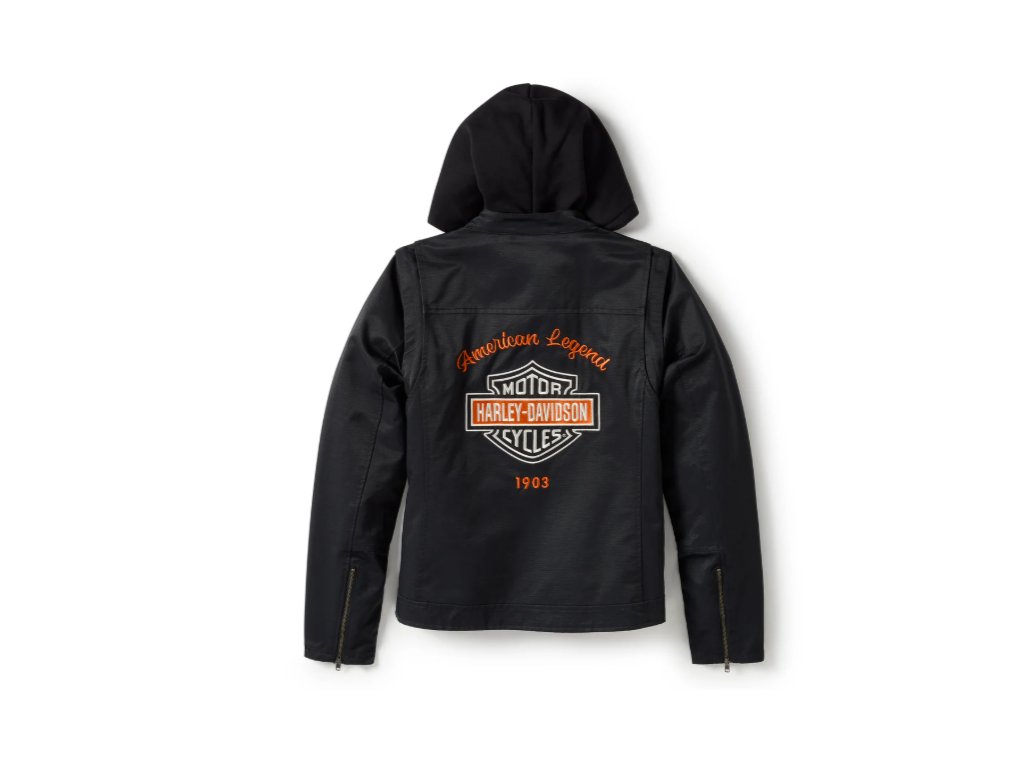 Vnější bunda má odepínací rukávy, které lze nosit jako vestu. Bunda má také princeznovské švy a prodloužený límec na patentky. Odnímatelná mikina má fleecovou podšívku se stahovací šňůrkou a kovovými cvočky, dva otvory na kapuci pro provlečení stahovacích šňůrek dovnitř, přední zip a žebrované manžety a lem. Mikina se zapíná na zip uvnitř vnější bundy, aby držela na místě i při nošení.